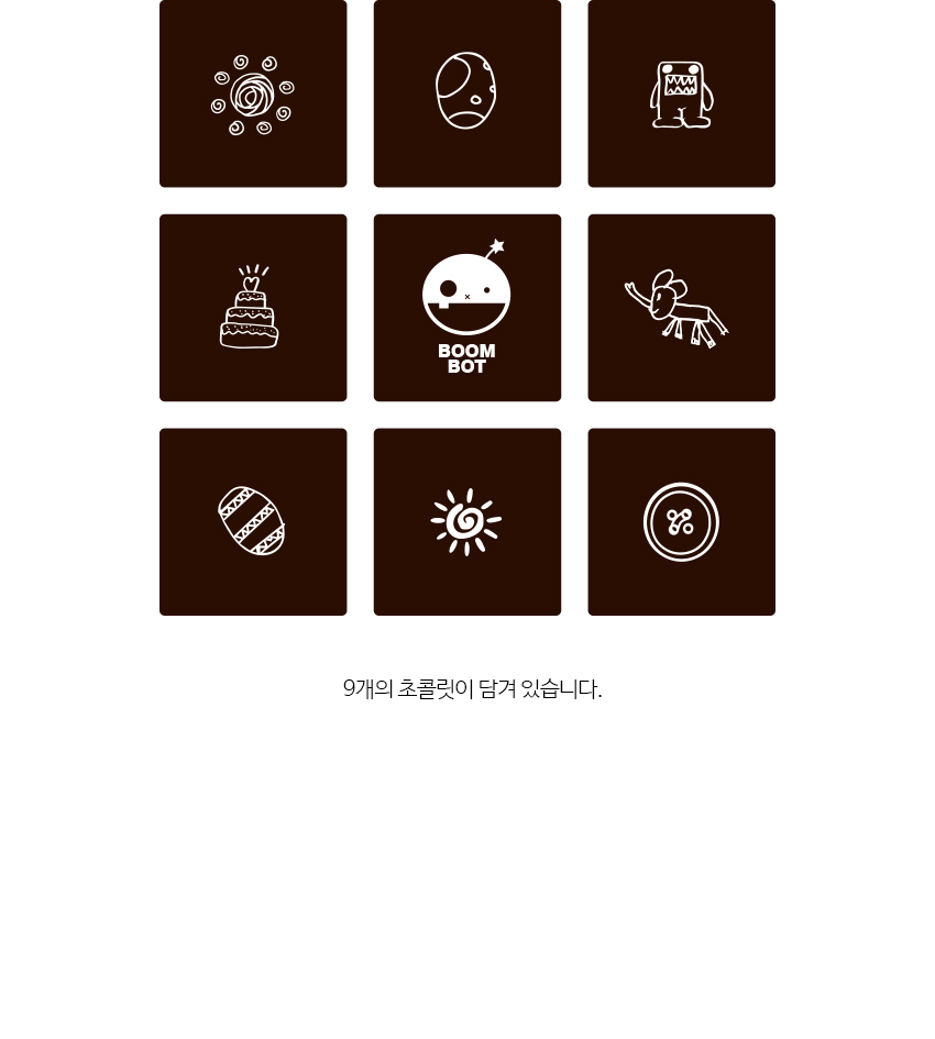 [9구셋트-붐봇]사각라운드 다크초콜릿 9개입 생일선물 답례품 기념품 각종이벤트SOLDOUT